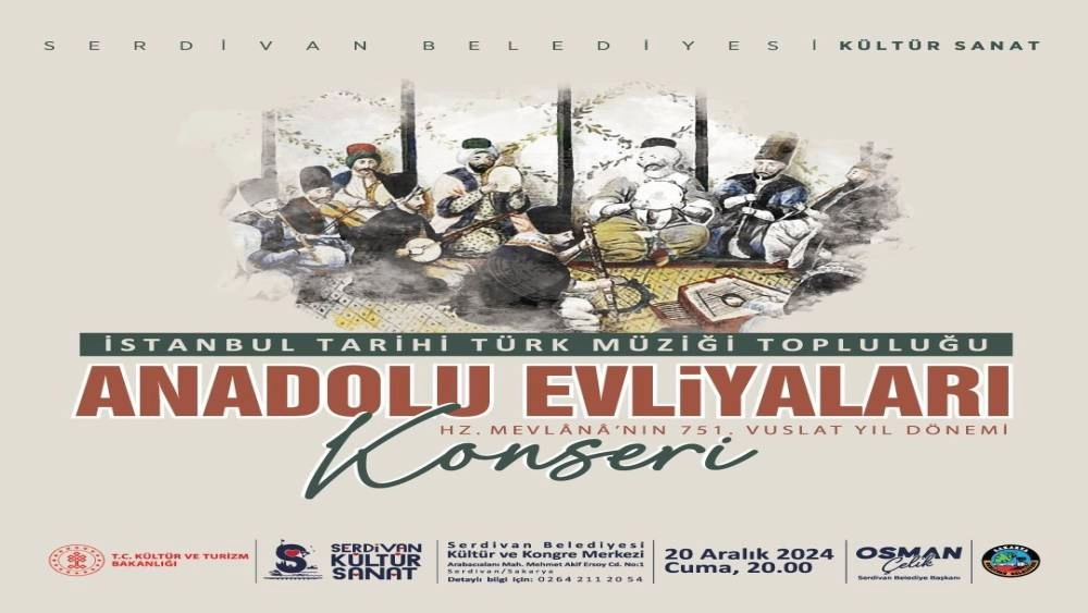 Serdivan Belediyesi, Hz. Mevlana’nın 751. Vuslat yıl dönümü anısına konser gerçekleştirecek. İstanbul Tarihi Türk Müziği Topluluğu’nun sahnede yer alacağı konserde Anadolu’nun manevi şahsiyetleri yad edilecek.Serdivan Belediyesi, kültür ve sanat etkinlikleri çerçevesinde anlamlı bir organizasyona daha ev sahipliği yapmaya hazırlanıyor. Hz. Mevlana’nın 751. Vuslat yıl dönümü anısına gerçekleştirilecek olan “Anadolu Evliyaları” Konseri, İstanbul Tarihi Türk Müziği Topluluğu’nun eşsiz performansıyla 20 Aralık 2024 Cuma günü saat 20.00’de Serdivan Kültür ve Kongre Merkezi’nde gerçekleşecek. Konserde, Türk müziğinin önemli eserleri icra edilerek Anadolu’nun manevi şahsiyetleri yad edilecek. Etkinlik, dinleyicileri geçmişin derinliklerine götürürken manevi bir yolculuğa çıkaracak. Ruh ikliminden ezgilerle dolu bu özel gece, sanatseverlere hem duygusal hem de tarihi bir deneyim sunmayı hedefliyor. Serdivan Belediye Başkanı Osman Çelik etkinlikle ilgili yaptığı açıklamada, kültürel değerlerin korunması ve tanıtılması adına bu tür etkinliklerin önemine vurgu yaparak, “Vatandaşlarımızı, bu anlamlı ve manevi atmosferi hep birlikte yaşamaya davet ediyoruz” dedi. Ücretsiz olarak gerçekleştirilecek olan konsere tüm sanatseverlerin katılabileceği belirtildi.